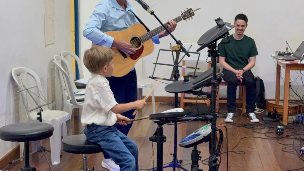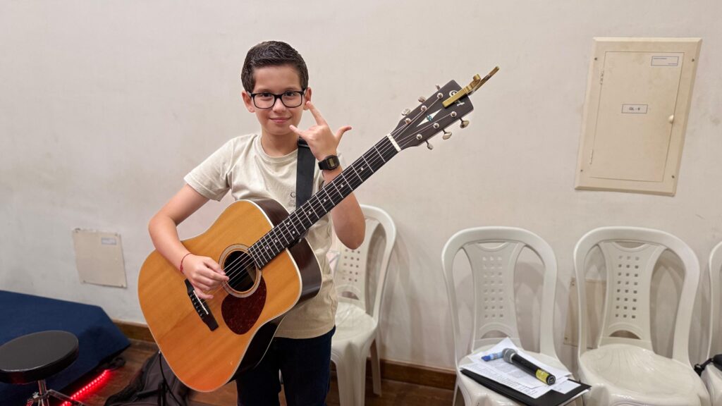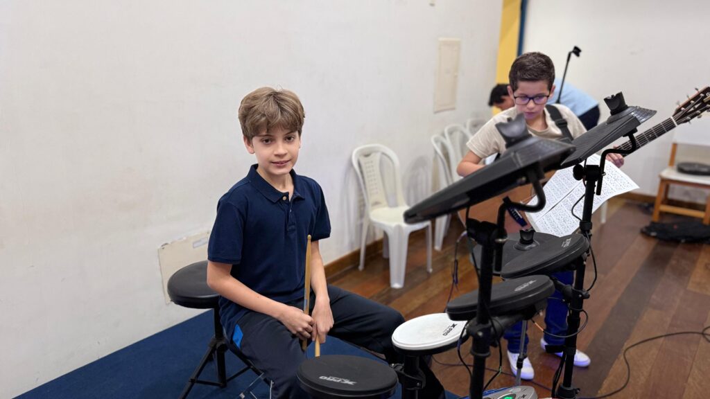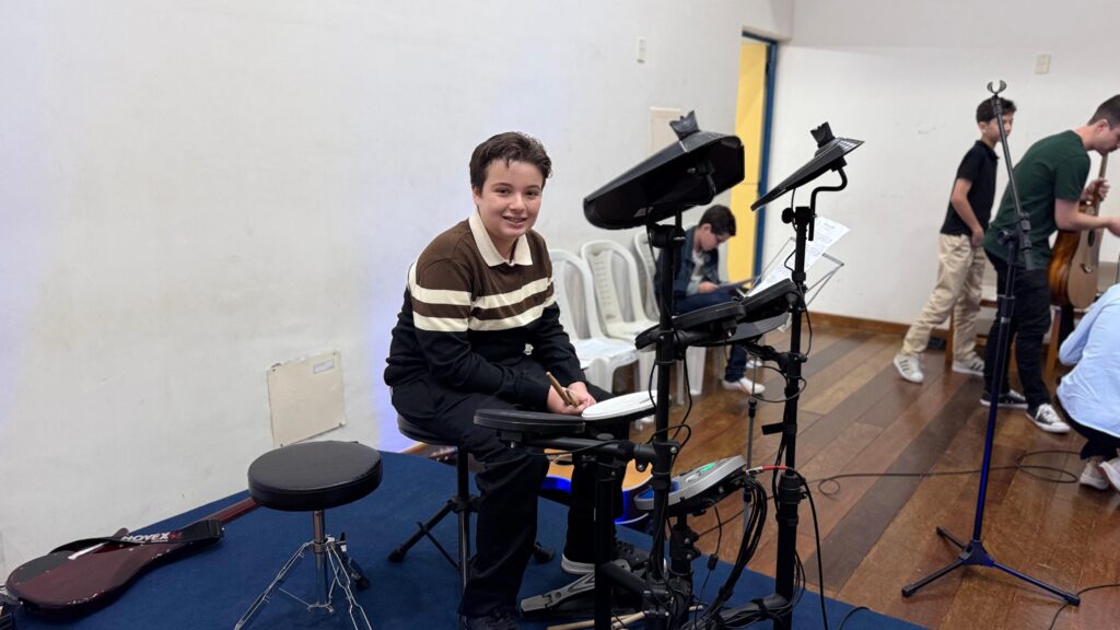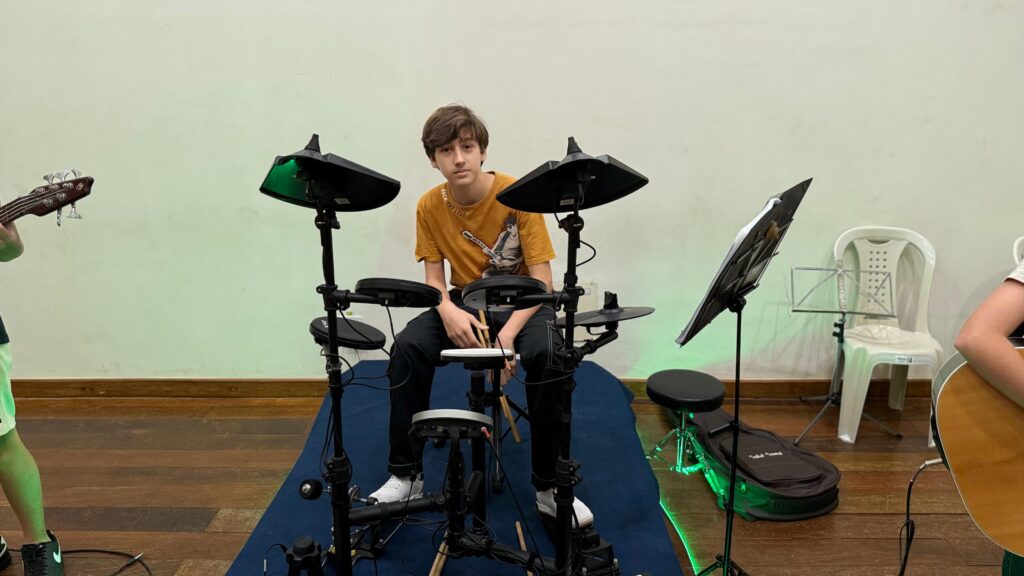 Aqui mostramos os eventos e apresentações que capturam a essência do talento e dedicação em cada recital realizado no CEM. Na bateria Daniel Passos e professor Wesley no Violão.